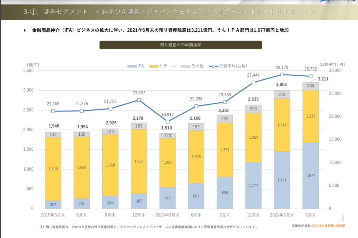 IFA部門の預かり資産増大。不動産が収益の柱なので低PER。買って配当貰いながら放置しておくには悪くない銘柄か。